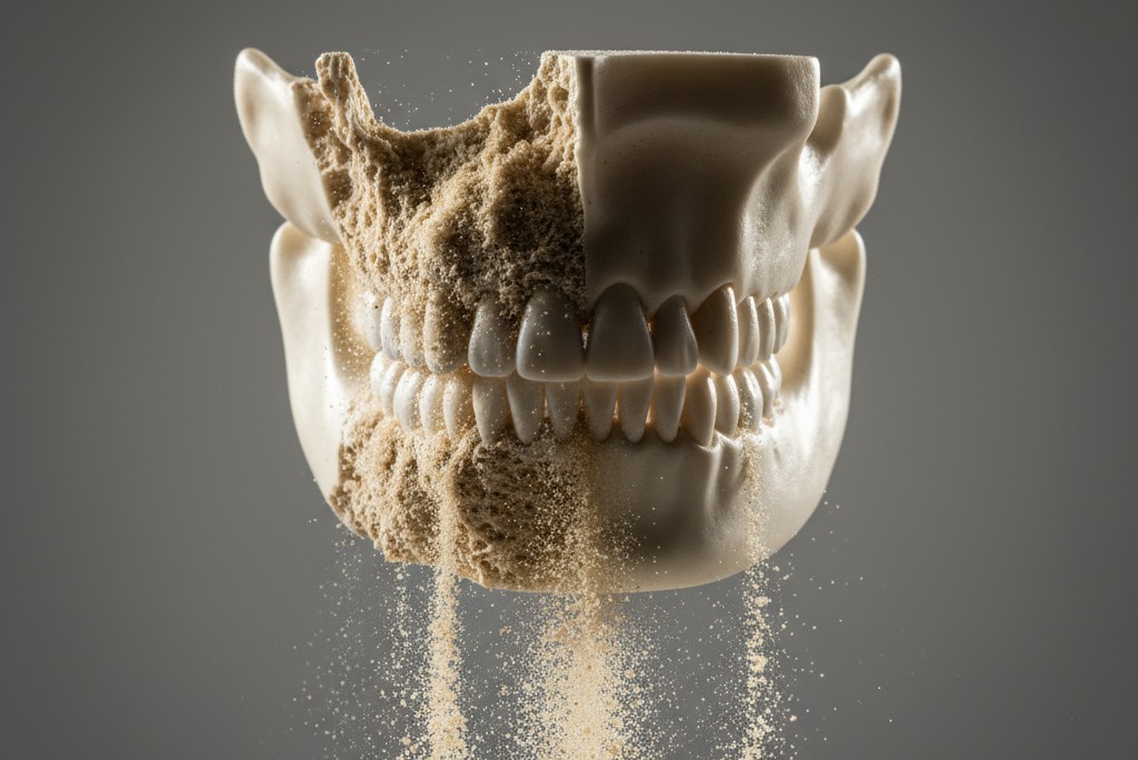 عدم وجود تحریک مستقیم باعث میشود استخوان فک به تدریج تحلیل برود. علاوه بر این، فشاری که پروتز هنگام جویدن بر روی ریج لثه وارد میکند، میتواند جریان خون را در آن ناحیه کاهش داده و فرآیند تحلیل را تشدید کند. این پدیده دلیل اصلی این است که دندانهای مصنوعی پس از مدتی گشاد شده و دیگر به خوبی در جای خود قرار نمیگیرند.